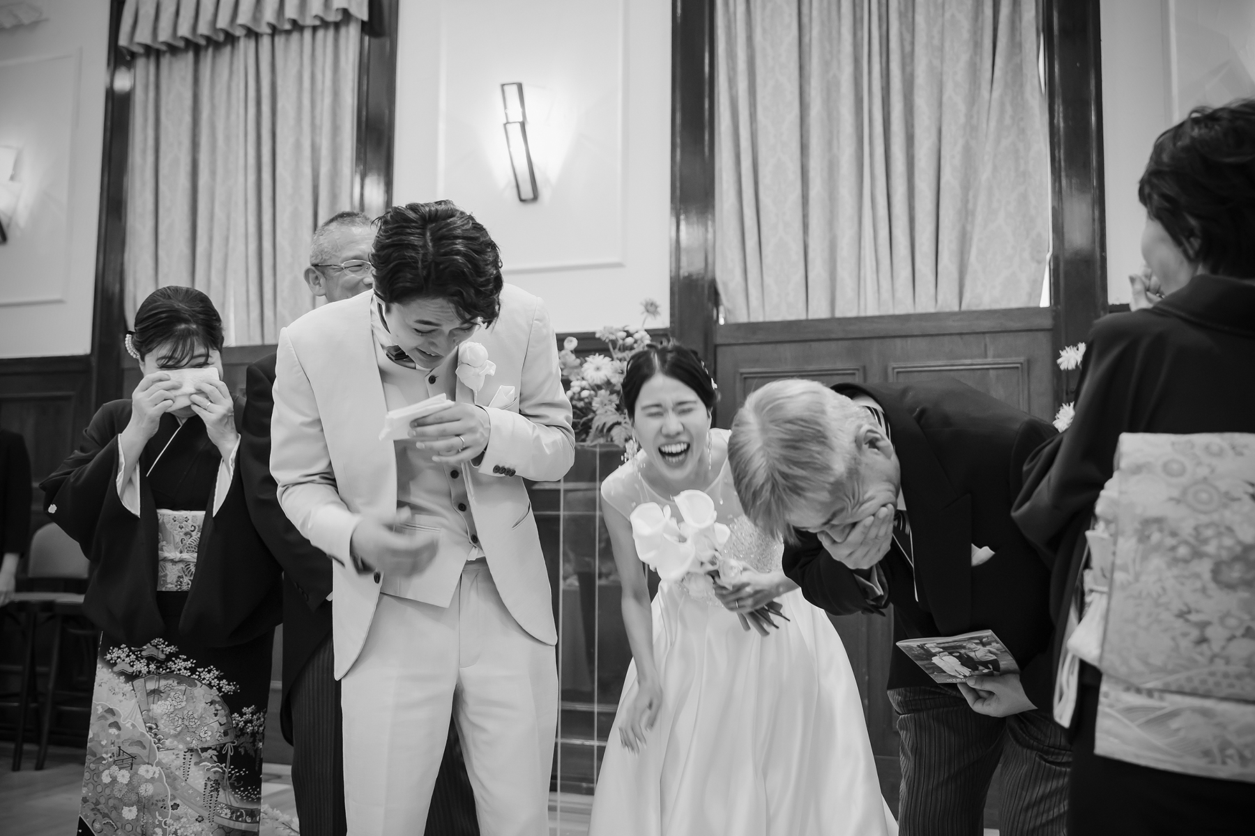 その姿に両家のご両親や新婦までもが、もらい泣きしたり笑ったり。