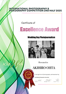 このたび開催された 2nd Half(下期)では「Wedding Day Photojournalism」部門で優秀賞を獲得し、上期に続く連続入賞となります。