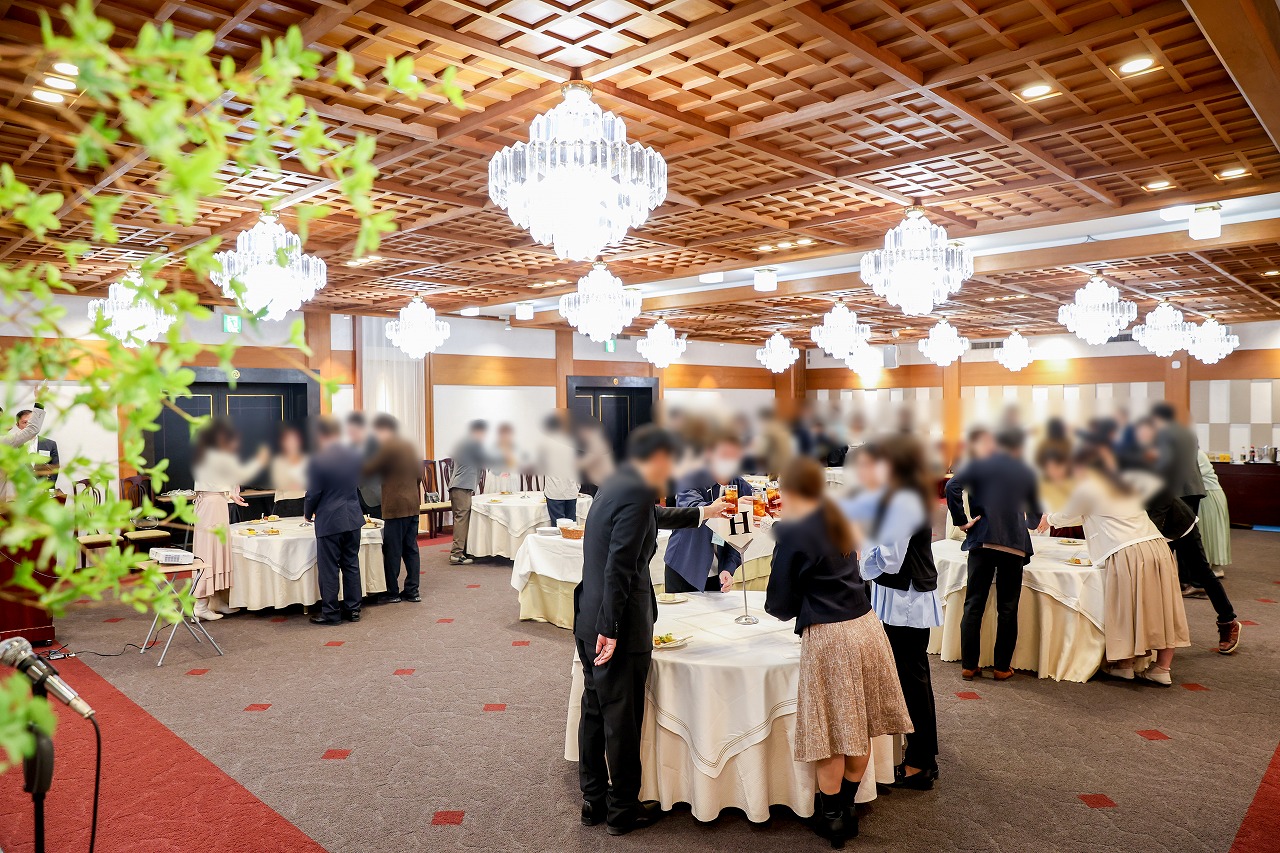 ご祈祷の後、寒川神社参集殿にてランチ交流パーティを開催しました。自己紹介タイムでは、全員と会話できるようテーブルを順番に移動しながら簡単な自己紹介を行い、和やかな雰囲気の中で会が進みました。